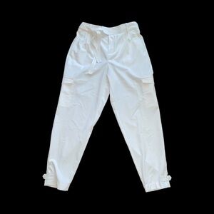 Experience ultimate comfort and style with The Limited's white cargo pants featuring a relaxed fit. They are crafted from lightweight, breathable fabrics, making them perfect for casual outings or lounging at home. Embrace versatility with their clean lines and modern design, ideal for pairing with your favorite tops. Pants are new. No tags.
