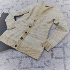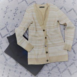 The Limited White & Tan Print Button Down Cardigan Sz: M