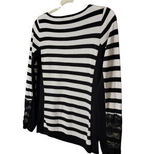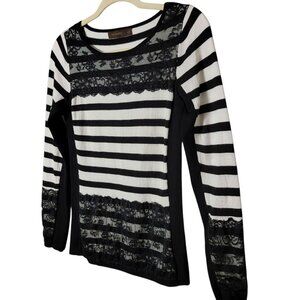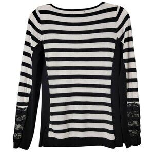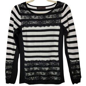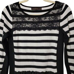 The Limited Womens Black White Striped Lace Y2K Long Sleeve Sweater Small