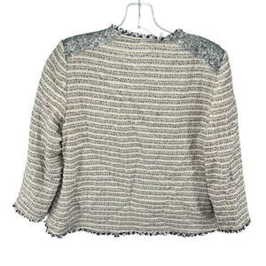 The Unlimited Womens Blazer Jacket Sequin Fringe Striped Lined Tan Gray Small