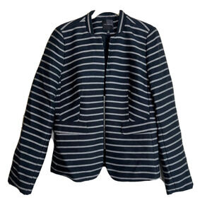 The Limited Womens Blazer Medium Navy Striped Short Zip Front Career