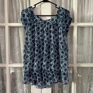 The Limited Women’s Blouse Blue White Geometric Pattern Flowy