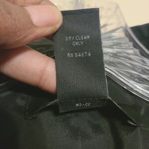 Elevate your professional wardrobe with this classic black three button blazer jacket by The Limited, size large. Jacket is lined, has three buttons and two inoperable front pockets. Fabric blend of viscose, polyester and spandex. Made from high-quality materials, this blazer offers a timeless and sophisticated look that will never go out of style. Its versatile design makes it perfect for both work and special occasions. Excellent pre-owned condition overall; small fabric snag on front of jacket (see pic 9).
