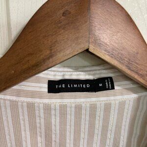 The Limited Womens Cream Y2K Striped Metallic Thread Long Sleeve Wrap Blouse Medium. Measurements Shoulder to shoulder: 16" Underarm to underarm: 18" Length: 23" Sleeve: 25" Offers always welcome! Measurements are approximations taken while hanging