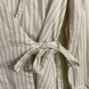 The Limited Womens Cream Y2K Striped Metallic Long Sleeve Wrap Blouse Medium