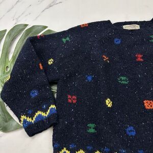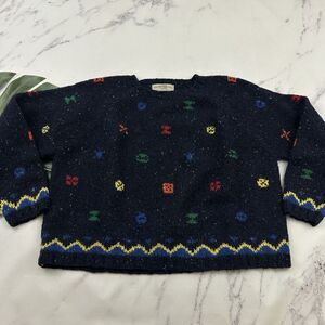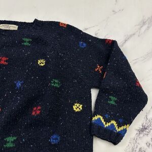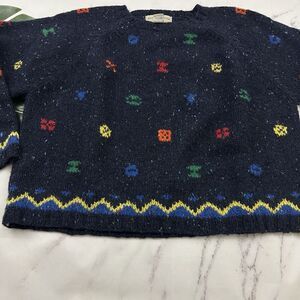The Limited women's vintage 90s knit by hand navy blue wool cropped sweater, size M. It is free from any rips or stains. It measures about 52 inches around the bust and is about 23 inches long.