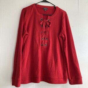 The Limited Women’s Knit Top Red Long Sleeve Sweater Grommet Lace Sz Large