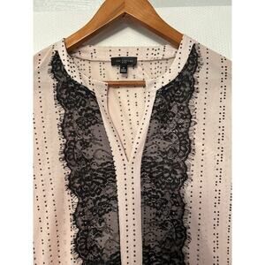 The Limited Women's Light Pink Black Micro Dot Blouse Lace Sheer V-Neck Medium