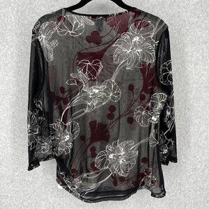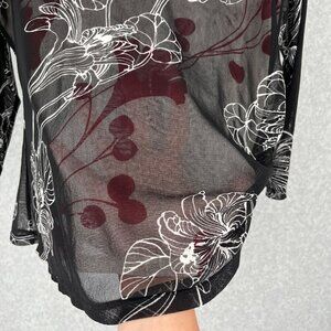 The Limited Womens Mesh Ruched Dark Floral Top Size XL Red Black 90s Grunge EUC