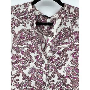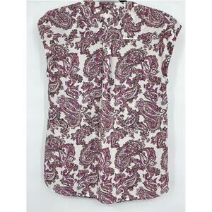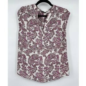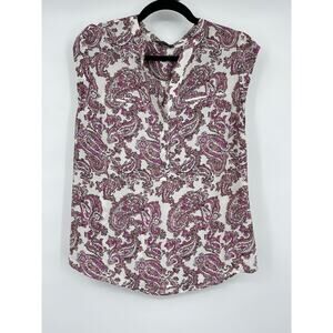The Limited Womens Purple White Paisley Sleeveless Blouse Button Front Top Small