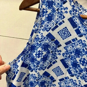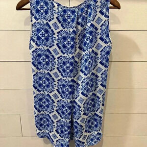 The Limited Women's S Blue White Porcelain Pattern Knee Shift Dress Sleeveless
