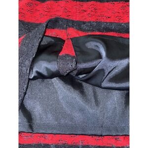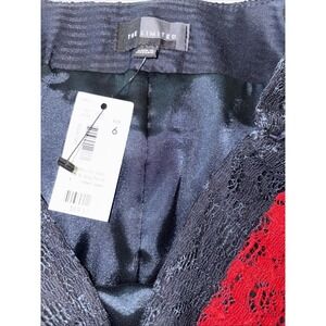 The Limited Women's Skirt in size 6 features a stylish red and navy striped pattern with lace detailing, making it a chic addition to any wardrobe. This pencil skirt has a zip closure and is lined for added comfort and structure. Perfect for various occasions such as travel, weddings, parties, casual outings, formal events, workwear, and business meetings. The skirt is machine washable and made from knit fabric, offering both style and convenience. With a straight and preppy style, this skirt is versatile and suitable for all seasons.