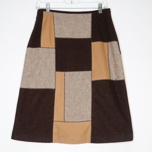 The Limited Womens Skirt Size 8 Wool Brown Tan Pencil Patchwork Academia 90s