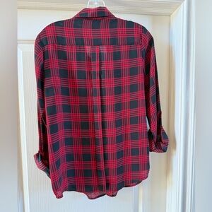The Limited Women’s Small Plaid Button Down Blouse Shirt Roll Sleeve Red Black