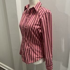 The Limited Women’s Striped Button Up Blouse M Pink Striped (A0128)