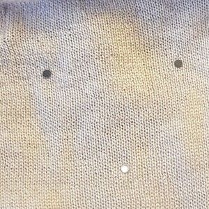 Back of Sweater two Rhinestones missing.Front of Sweater small snag. See pictures for details. This does not affect garment to wear