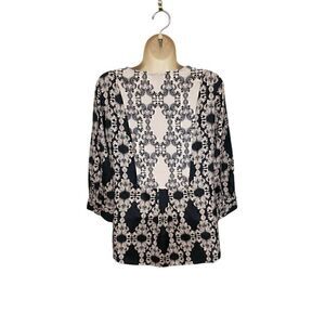 The Limited Women's Sz M Top Black & Ivory print V-Neck 3/4 Sleeves With Buttons