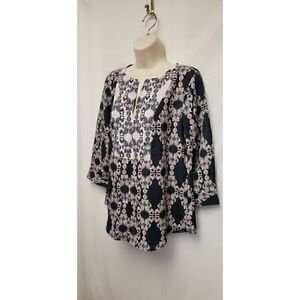 The Limited Women's Sz M Blouse Black & Ivory print V-Neck 3/4 Sleeves With Buttons. This blouse is in excellent condition no flaws
