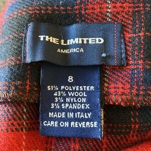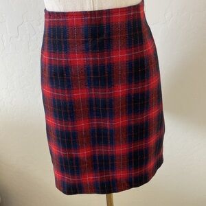 Selling a beautiful timeless wool blend plaid skirt from The Limited. Blue, black, and red. Size 8, fits like a 6-8. In amazing condition.