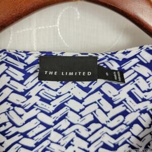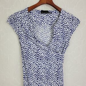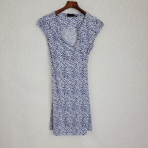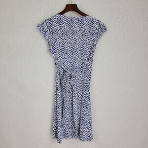 The Limited Wrap Dress Womens Small Blue White Zigzag V Neck Stretch Side Tie