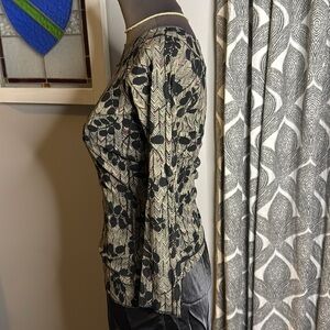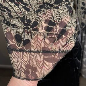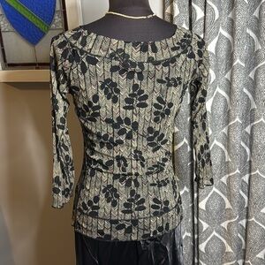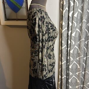 Y2K printed mesh top. Size medium. In excellent pre loved condition. Measures 15” across the chest, 21” long & has 18” long cropped sleeves.