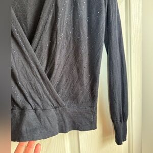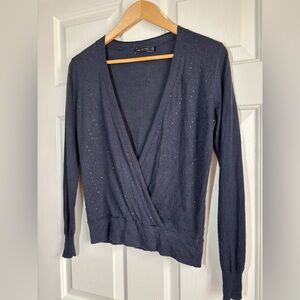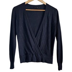 The Limited Y2K Sequin Sweater Top Small Navy Blue Deep V-Neck Silk Cashmere