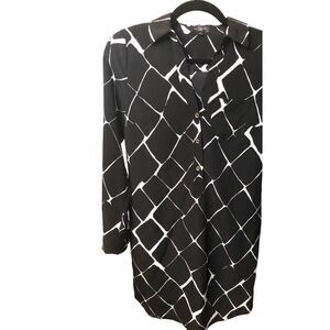 The Limited black and white Ashton shift dressSize XS. Silver buttons 3/4 way down front, button accents at wrist cuffs. Collared , long sleeve dressy shirt dress. NWOT