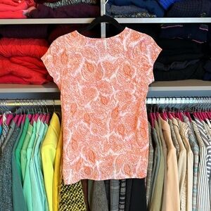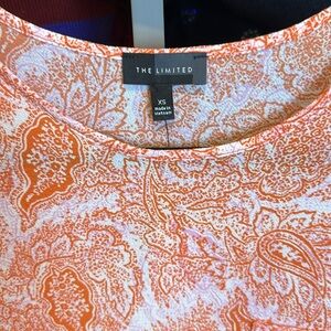 The Limited orange and white print short sleeve scoop neck top size XS NWT