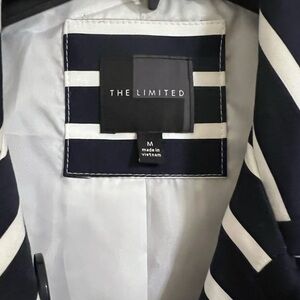 The Limited raincoat navy white striped double breasted trench medium lined