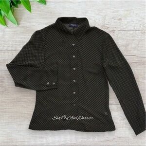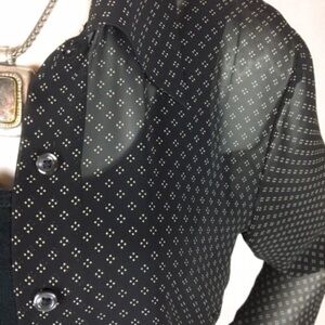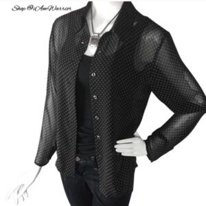 Pretty sheer black collared button down blouse with dotted diamond print from The Limited is perfect layered over a black cami and wide led pants. GUC, size small.