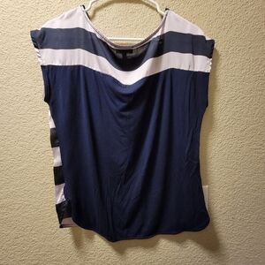The Limited chunky striped blouse. Lavender and navy with gold hardware on the shoulders. Size small