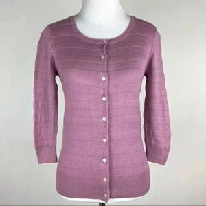 The Limited womens sweater size XS pink mauve striped button-down cardigan 3/4 sleeve career