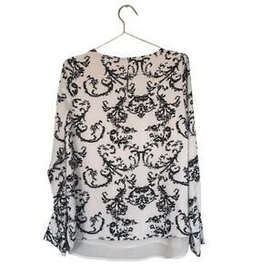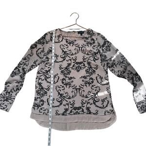This is a beautiful blouse from The Limited in a women's size small. The blouse is pink with a black print.