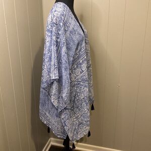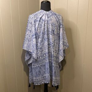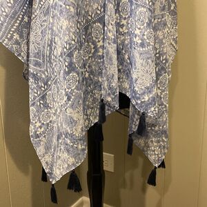 The Limited 0/Small Light Blue Printed Tassel Short Sleeve Cover Up. Lightweight. Swim Beach