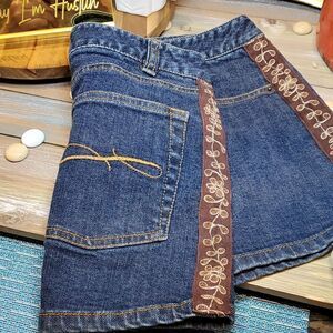 The Limited Denim Mini Skirt, Lace Embellished, Sz 0