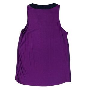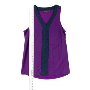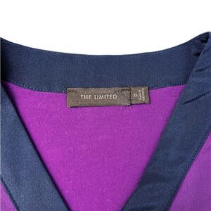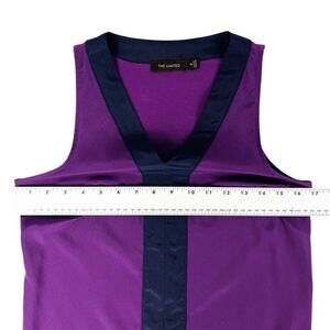 Super cute pre-owned The Limited Purple Sleeveless Blouse Top Size XS. Blue stripe along the collar and down the front. Satin style front and rayon back. No stains or holes. Please ask all questions before purchasing.