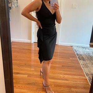 The Limited Sleeveless Black Surplice Ruffle Midi Dress | SZ XS
