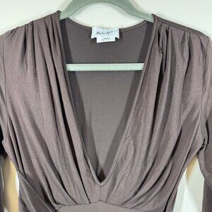 The Line By K Brown Long Sleeve Ruched Maxi Dress Large Elegant Bodycon