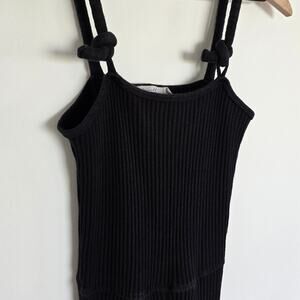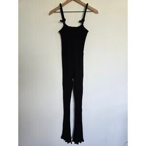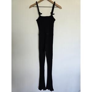 The Line by K Black Ribbed Knit Cotton Jumpsuit Sz Small Flare Leg