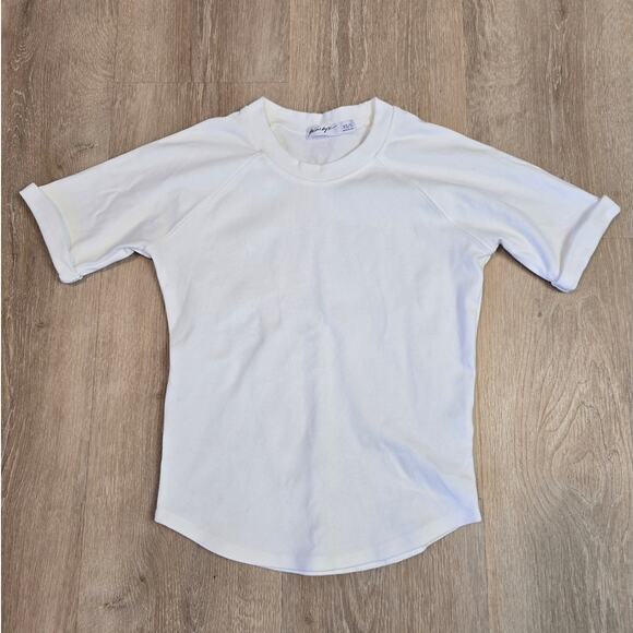 The Line by K White Short Sleeve Knit Top Raglan Tee Minimalist XS/S