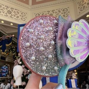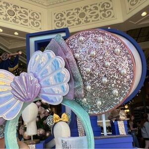Shellebrate The Little Mermaid with our see-worthy ear headband inspired by Disney's 1989 movie. The glittering ears are accented with pearlescent beads and the bow has a metallic silver PVC layer with a shell knot, making this an unfathomably cool accessory.