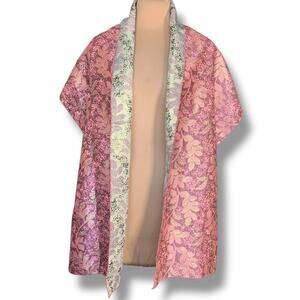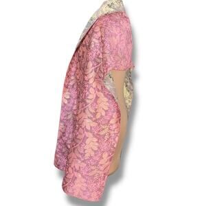 The Little Tichel Lady Reversible Pink Green Metallic Floral Brocade Shawl Scarf