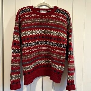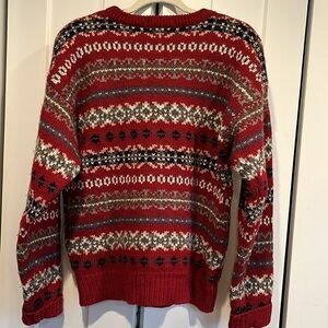 Stay cozy and warm in this vintage 100% Shetland wool sweater. Small hole in the cuff, not noticeable if worn with rolled cuffs. Please see photos.