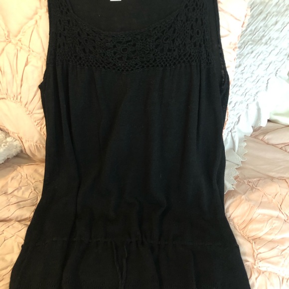 Cute top with crocheted detail and drawstring.