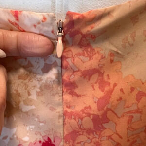 The Loft Orange and Tan Sleeveless Fully Lined Mini Dress. Size 10. Thanks for stopping by! - pit to pit is 19” - length is 37” - flat waist is 16” - zipper is 21” long in back - easy care easy wear AF*0521