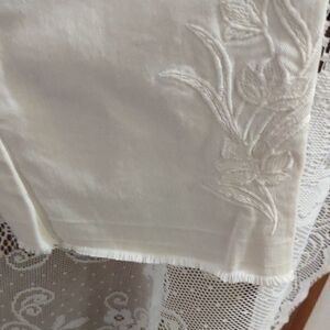 The Loft size 4 cream colored crop pants embroidery flowers on outside of both legs, neutral tone roll up cuff on bottom, waist 15 1/2 seam to seam, 25 inch inseam, excellent condition