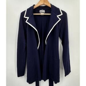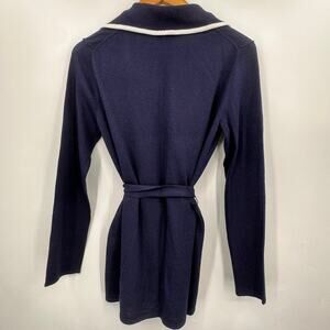 The Look by Randolph Duke Belted Sweater Cardigan Jacket Womens XS Navy Blue with White Trim