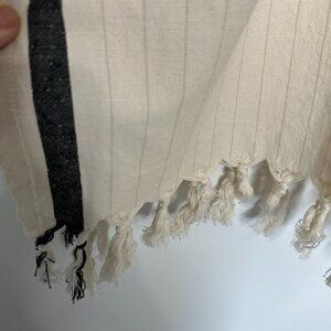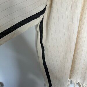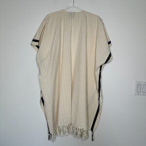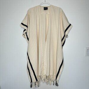 The Loomia Silvia Kimono Poncho Cover-Up OS Cream Black Fringe Beach