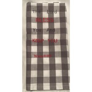 "The Lord Bless You & Keep You" Tea Towel Gray/White Checked Embroidered