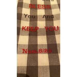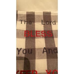 "The Lord Bless You & Keep You" Tea Towel Gray/White Checked Embroidery 20x28